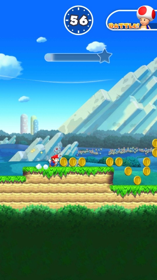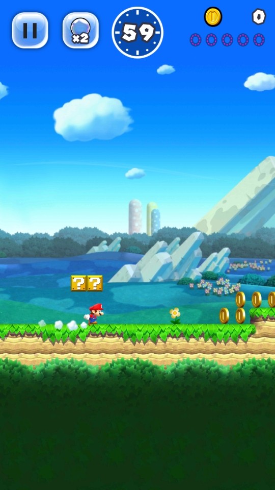 マリオが勝手に動いてくれるので、プレイヤーがする操作はマリオをタップしてジャンプさせるだけです。