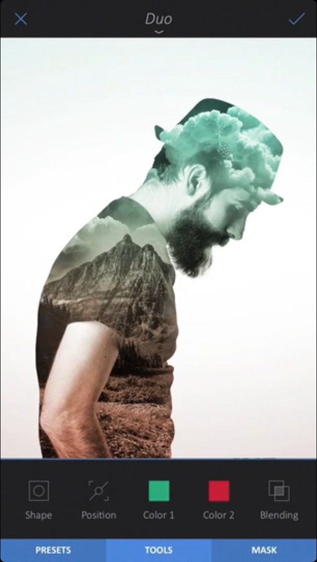 もちろん「Facetune」を作っている会社なので人物の加工も得意です。ただやはり肌に関しては自撮り特化の「Facetune」のほうが優れています。まずは「Facetune」で肌の加工をしましょう。その後に「Enlight」でさまざまなエフェクトを重ねていくことで、アーティスティックな写真を作成することができます。