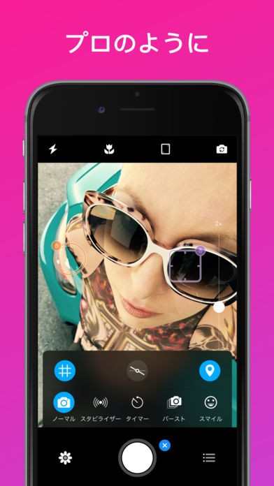 一眼レフっぽい写真を撮りたい人がまず押さえておきたいのが、Camera+というアプリです。これさえ入れておけばプロ顔負けの写真を目指せます。Camera+は、ピントと明るさ判断をそれぞれ別の場所に設定できるようになっているので、明るさの調整が思い通り!
