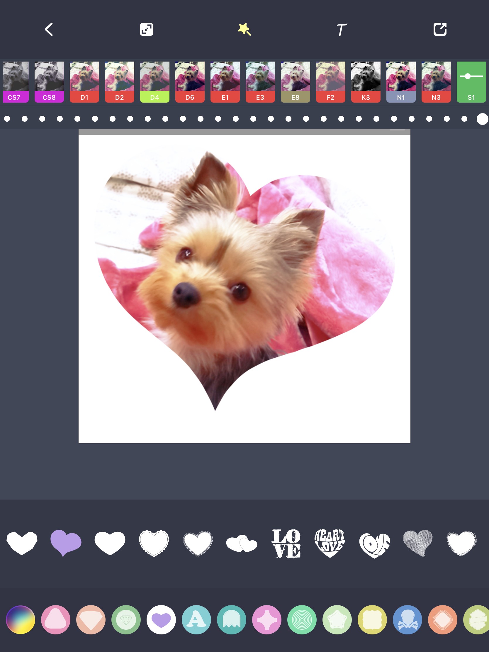 さらに、丸や四角といったベーシックなシェイプから星やハートなどの特殊なシェイプまで200種類以上が揃っています。フィルターの種類も豊富なので、イメージ通りの写真に仕上げることができます。