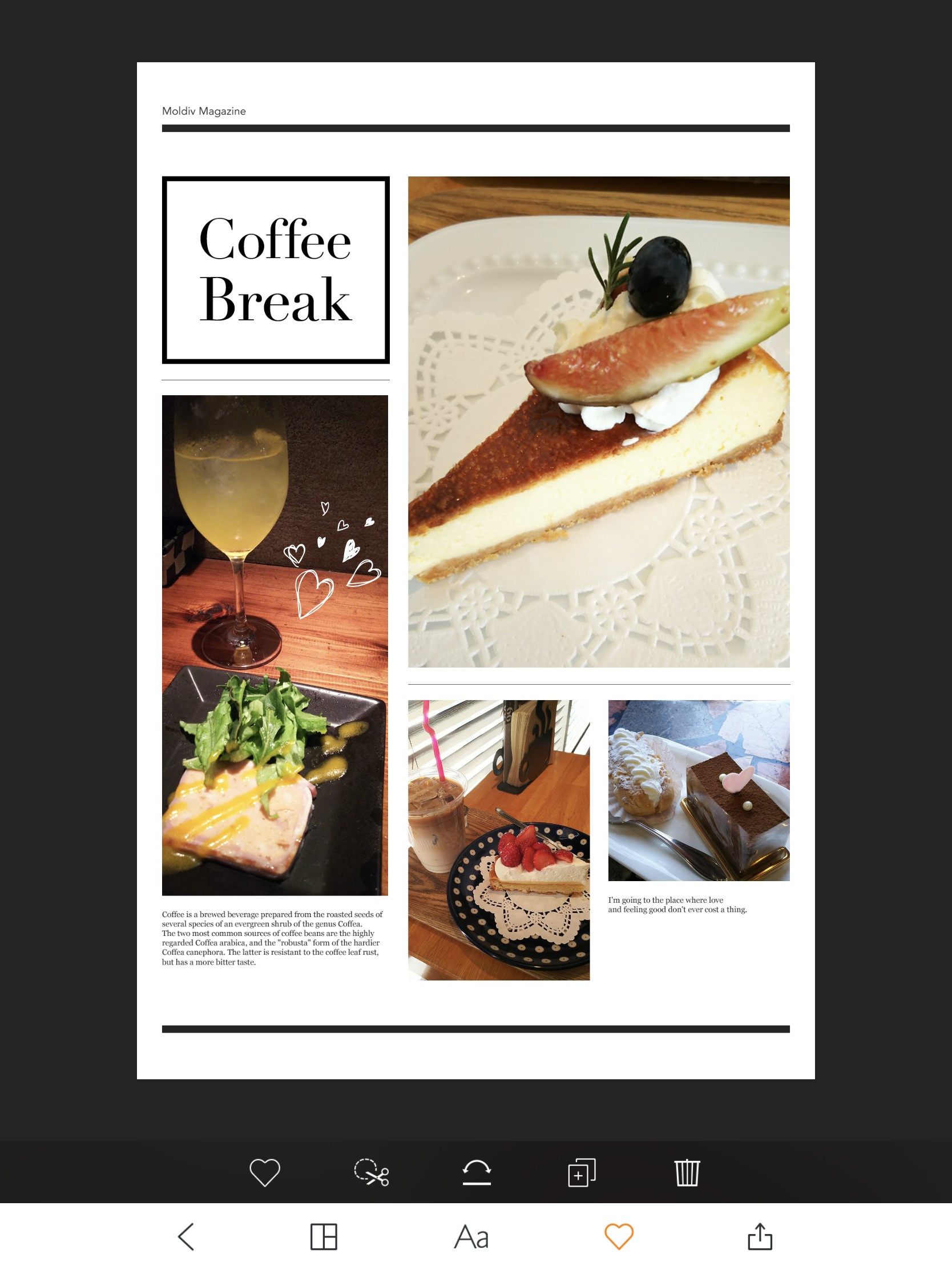 あらかじめ用意された雑誌風のテンプレートを選び、あとは入れたい写真を選ぶだけで雑誌の表紙やオシャレなポスターのような写真が完成します。
