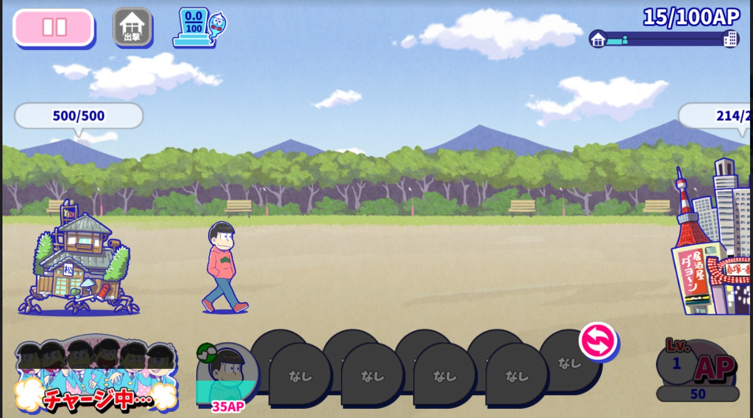 おそ松さんのへそくりウォーズ~ニートの攻防~は、6つ子たちがイヤミ、チビ太、デカパンたちからへそくりを奪うタワーディフェンス系ゲームとなっています。