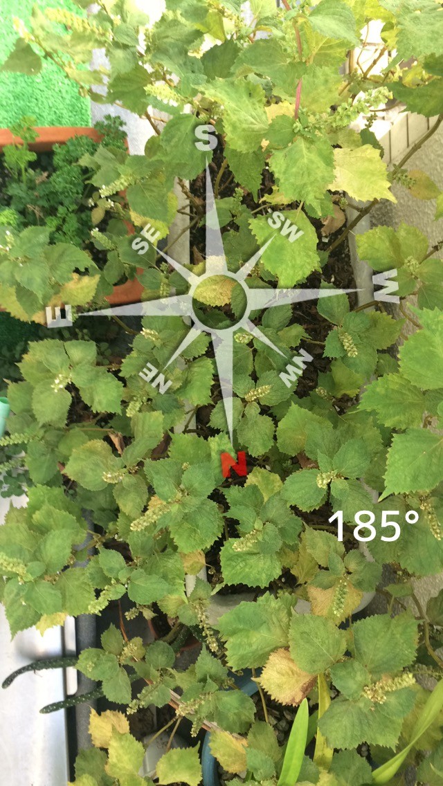 iPhoneのカメラで写真を撮る時に、方向の表示を重ねた写真にすることができます。