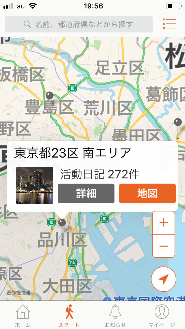 距離を計測できたり、地名や住所で検索できたり、使い勝手のよい地図のアプリです。