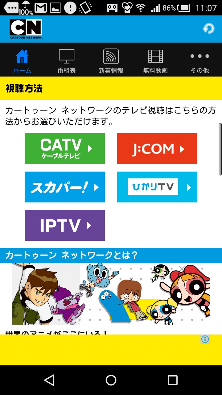 ちょっとしたアニメアプリをお探しなら、更新される無料動画も楽しめる「カートゥーンネットワーク」を利用してみてはいかがでしょうか。