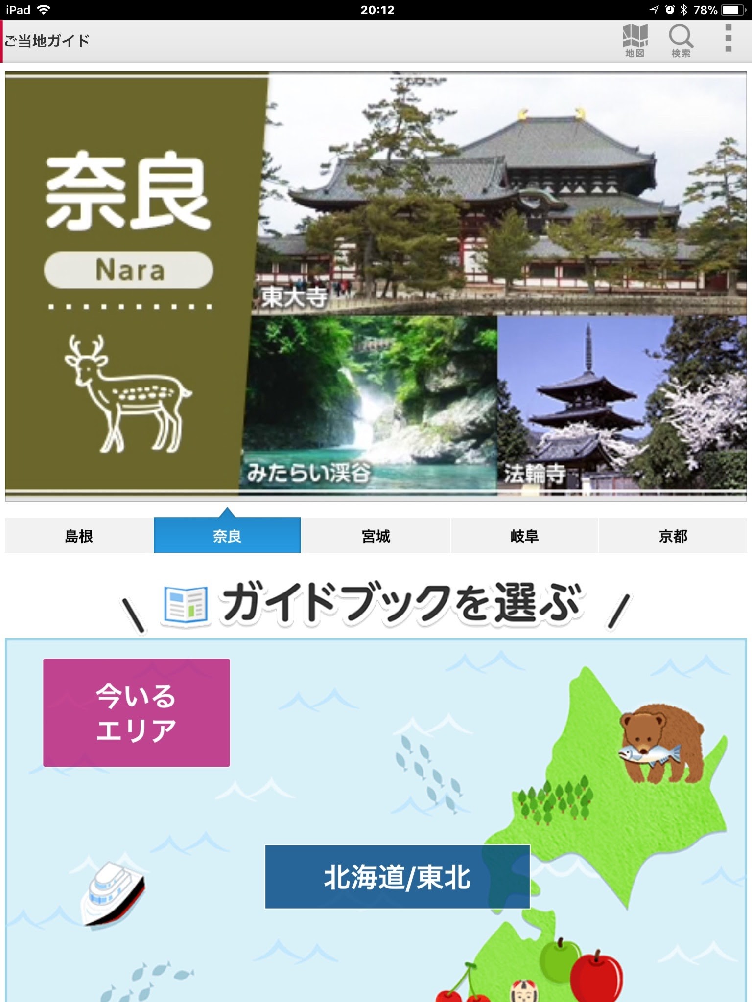 全国のガイドブック機能が満載 ご当地ガイド(株式会社NTTドコモ 無料)