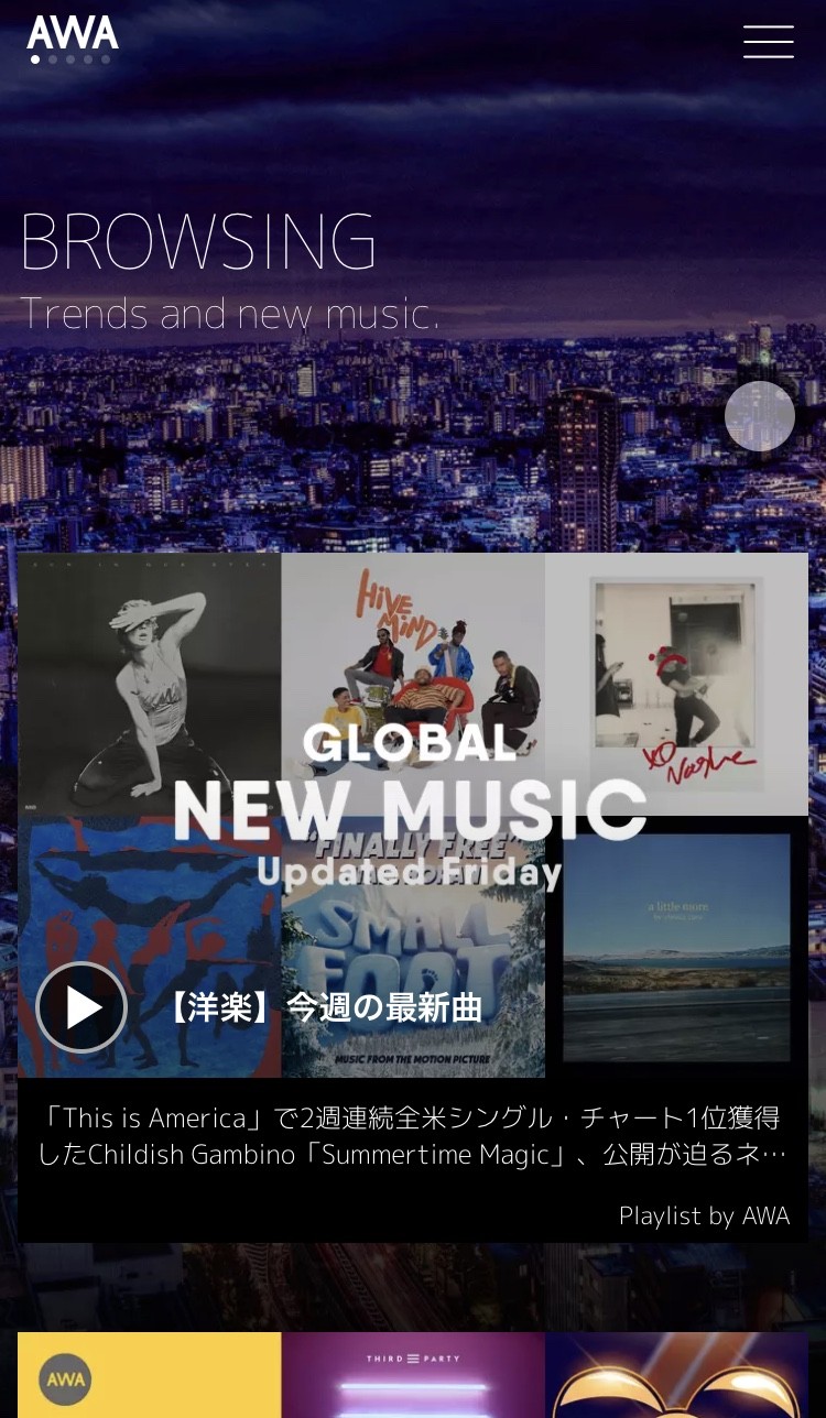 Freeプランだと、曲の盛り上がる箇所の90秒間をハイライト再生で聴けます。