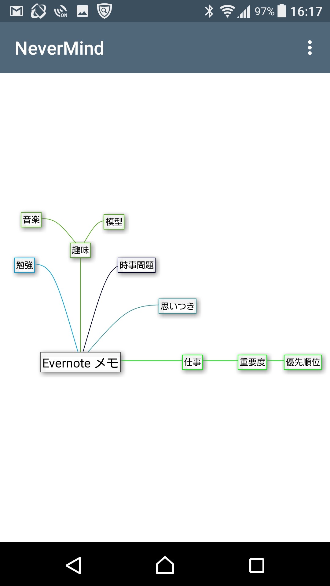 これと同じようにして、Evernoteの中にたまったノートを、関連キーワードごとに分類しよう、というアプリです。