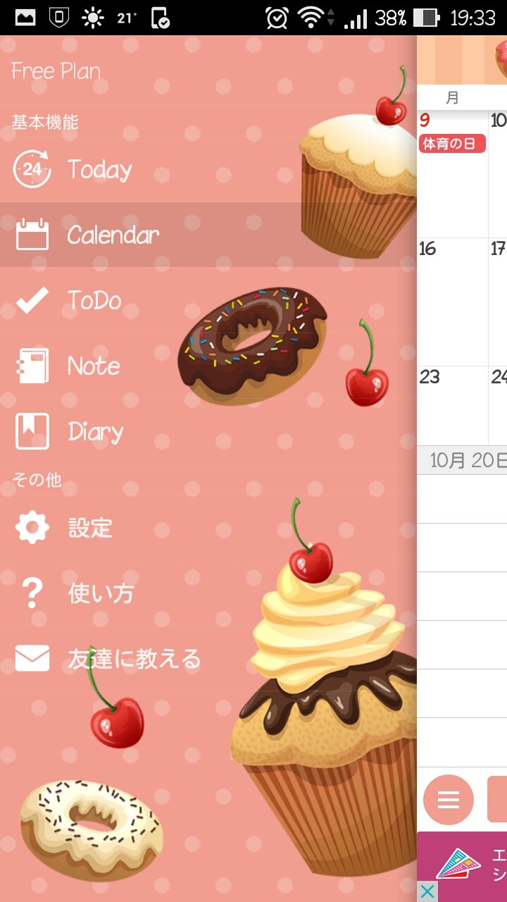 カレンダー、やることリスト(ToDo)、ノート、日記の機能が搭載の万能スケジュール帳アプリ。