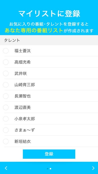 アプリでは、画面表示される映像の大きさを3段階から選択することができる機能などもあり、スマートフォンを縦でも横でも活用できます。さらにテレビ番組表をチェックし、オンエア前に通知してくれる機能も搭載されています。好きなタレントや番組をマイリストに登録しておけば該当のチャンネルをまとめて探し出すことができ、見たい番組を簡単に探せるのが魅力の動画配信アプリです。