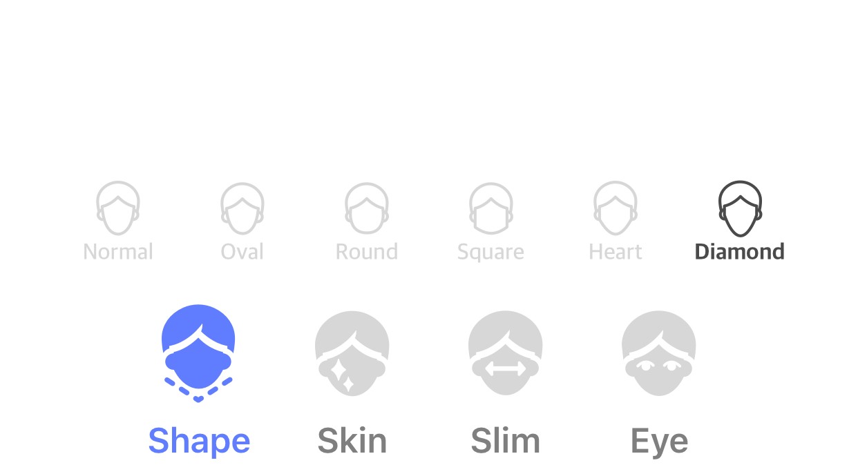 - 「肌磨き」や「スリム」「顎」を補正して顔の輪郭と肌を整えます。