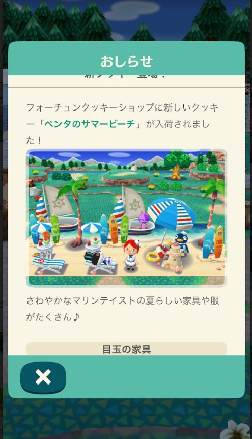 4月から実装されたフォーチュンクッキーは、さまざまなクッキーを集めることで、どうぶつ達の特別なエピソードを見られたり、家具や洋服をもらえるアイテムになっています。