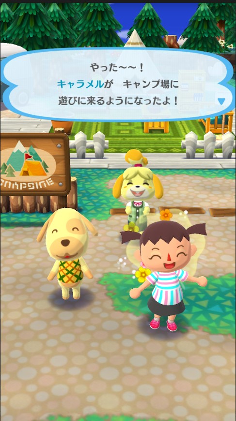 どうぶつ達はランダムに様々な場所に現れ、3時間ごとに入れ替わります。ですが話しかけておしゃべりしたり、お願いを叶えて仲良くなると、キャンプ場に招待することができるようになります。