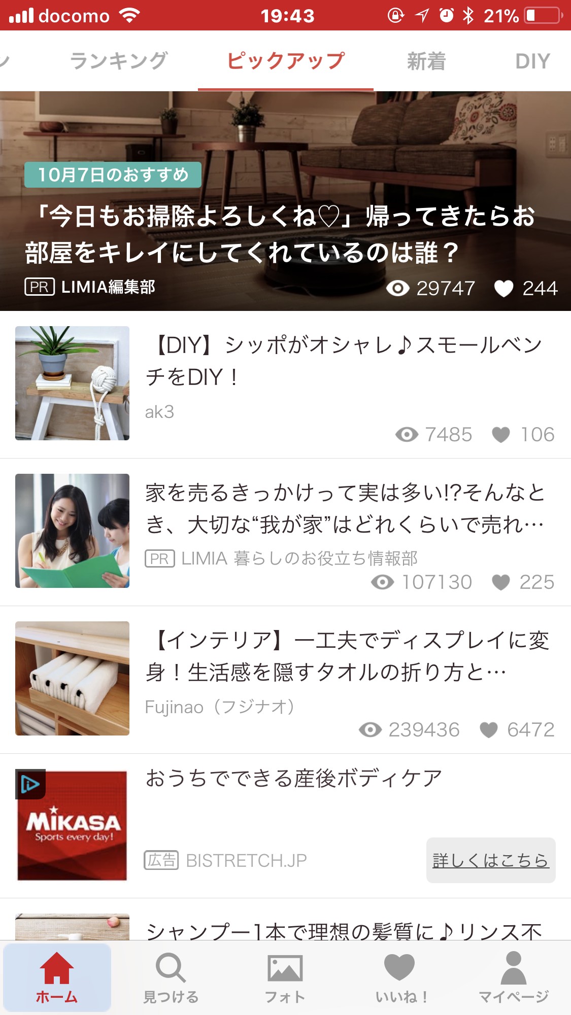 「LIMIA(リミア)」はDIYで手作り家具に挑戦したい、収納術が知りたいと思っている方におすすめのアプリです。