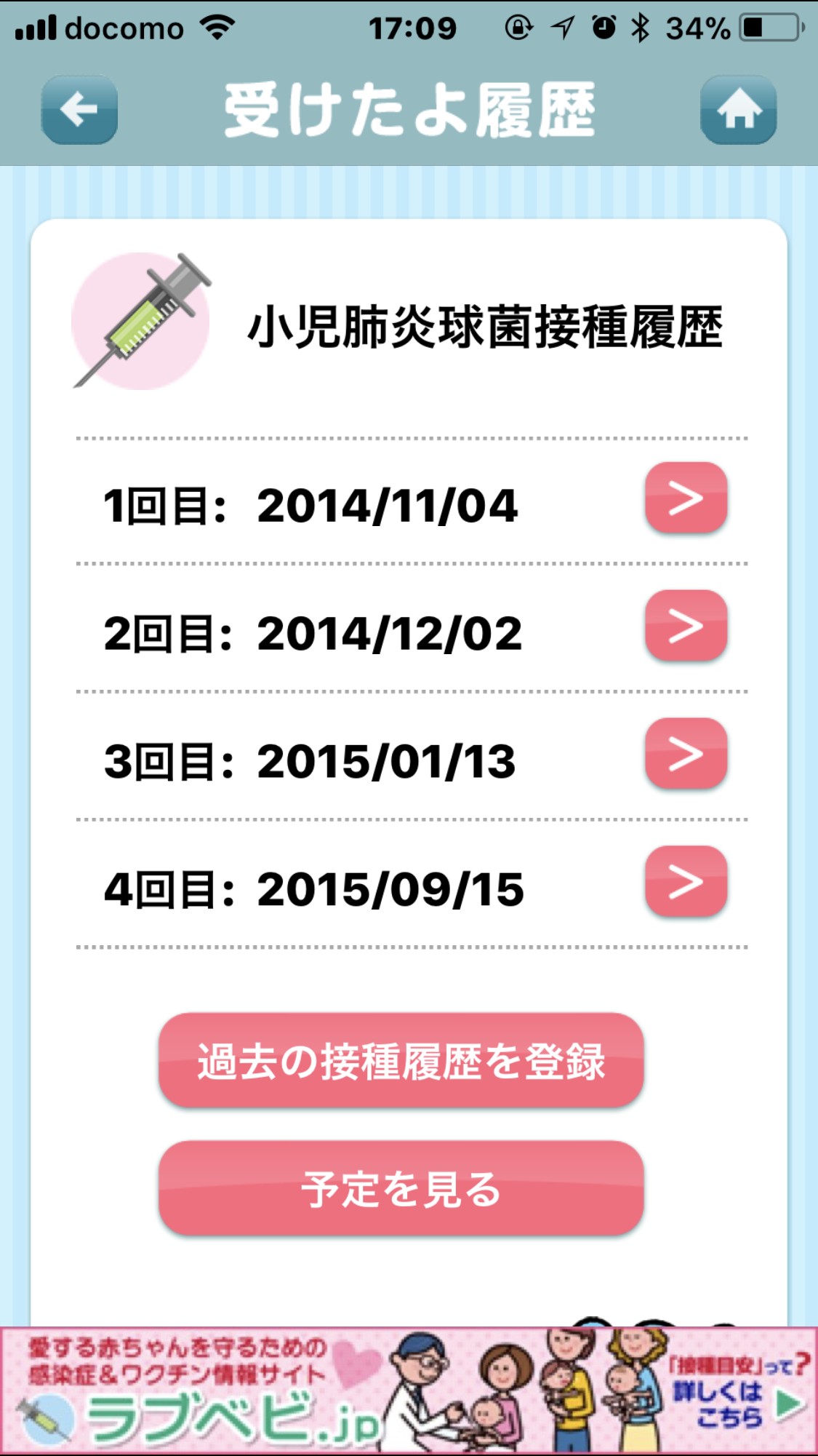 こちらのアプリでは、お子様の予防接種についての知識や管理をすることができます。