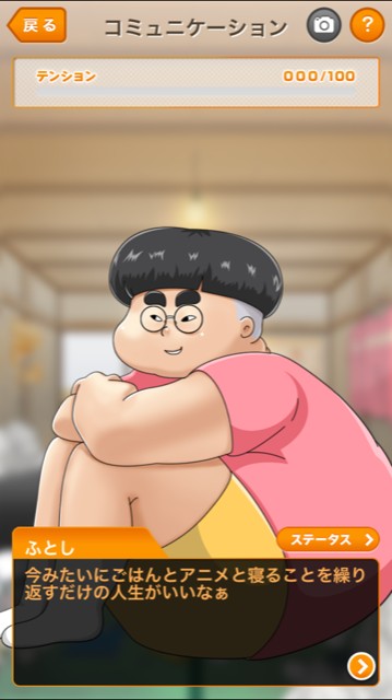 アプリ内の太っているキャラクター「ふとし」と一緒にエクササイズすることができます。