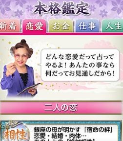 過去に30回以上もテレビに出演し、行列が絶えない占い師として紹介されました。そんな人気占い師、銀座の母の占いが無料で受けられるおすすめのアプリです。
