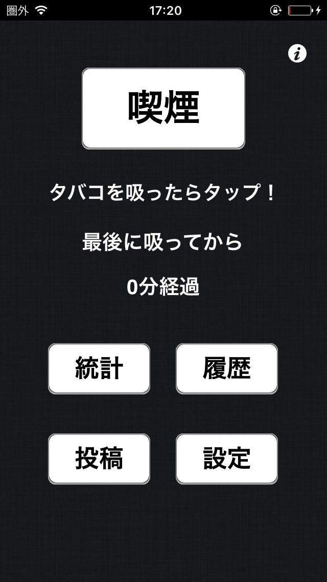 アプリ画面には最期にタバコを吸ってからの時間が分数で表示されており、