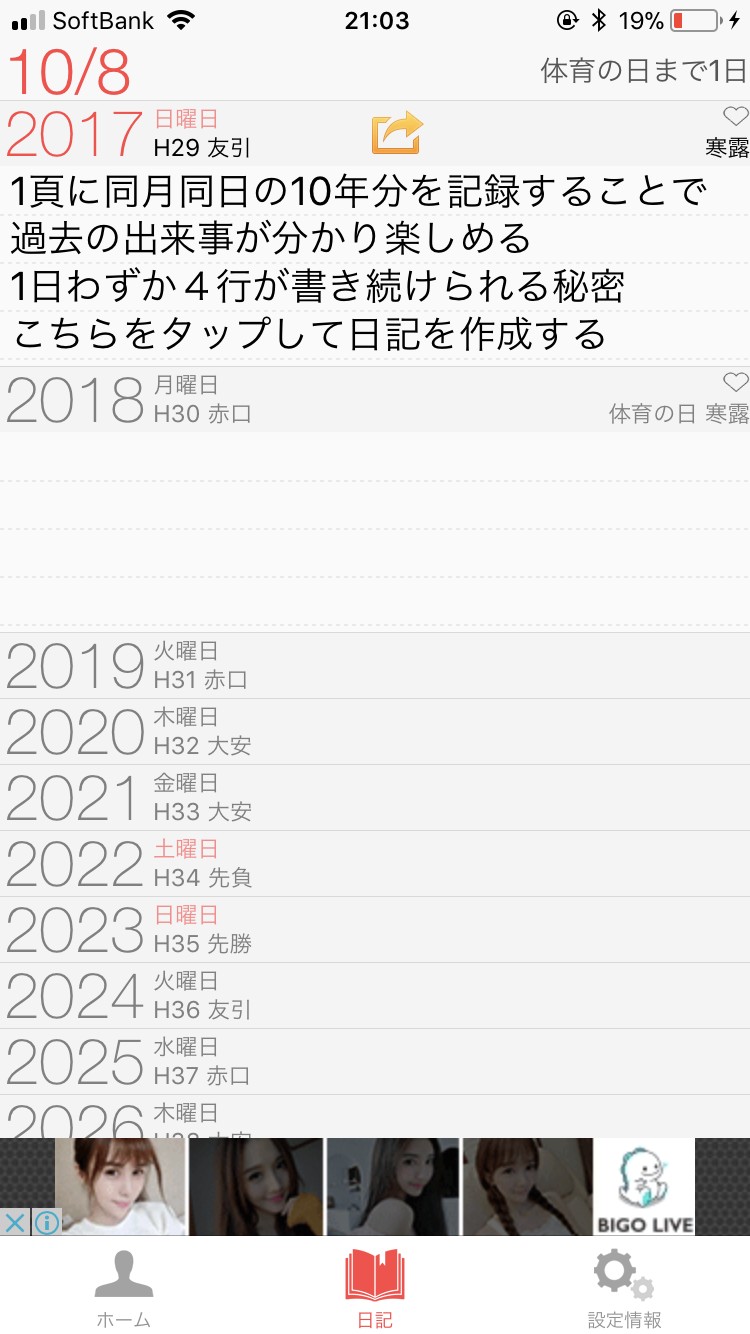アプリ名の通り、10年分の記録をつけることが出来るアプリとなっており、
