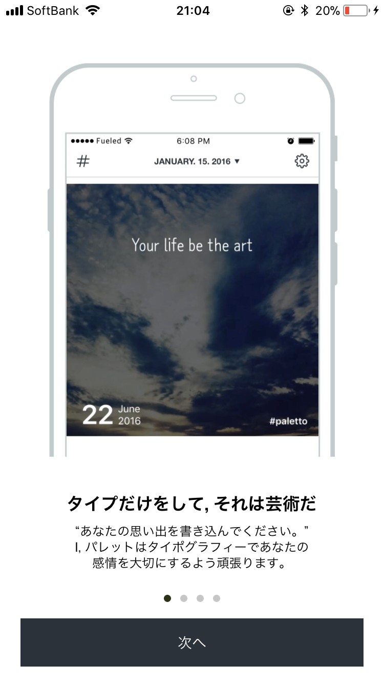 文章と写真データを合わせて、日記をつけることが出来るアプリです。
