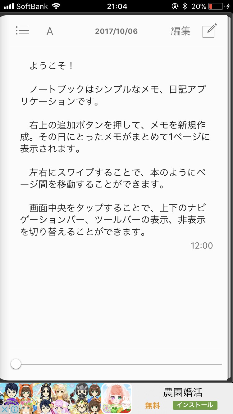 1日、1ページのメモに文章を書き込むことが出来るアプリです。
