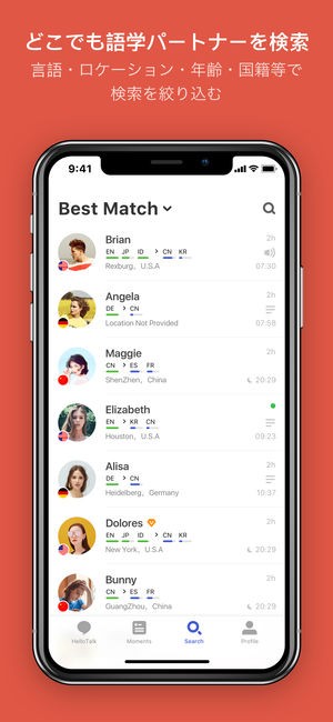 英語などの語学を勉強中の人にぜひおすすめしたいのが「HelloTalk」!HelloTalkは世界中に1000万人以上のユーザーがおり、100以上の言語に対応しています。日本人であれば日本語を勉強している外国の人を中心に友達になることができ、自分の語学力をブラッシュアップしながら相手の日本語学習の手助けができる、give&takeなアプリなのです。