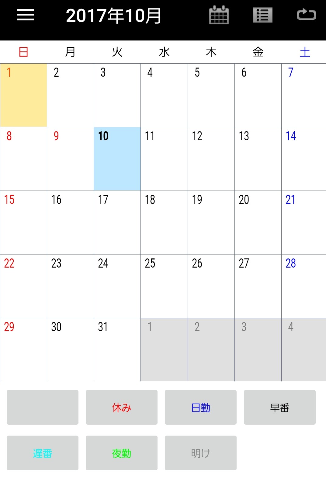 シフトの管理をカレンダーに表示するアプリです。