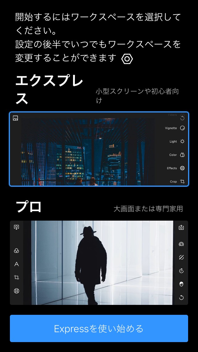 「Polarr」は本格派な人におすすめしたい写真加工アプリです。「Polarr」を」をダウンロードして起動すると、まずモードを選択させられます。iPhoneでの利用や細かい設定はよくわからない人には「エクスプレス」モードが、iPadでの利用や細かい設定も使いこなせるという人には「プロ」モードがそれぞれおすすめです。それぞれのモードのデモ画面を見てみると分かりますが、エクスプレスモードでも充分素敵な写真を作ることができます。モードが分かれているだけあって、プロモードはiPadに最適化されたUIになっており使いやすいです。iPadをよく利用するなら「Adobe Photoshop Fix」や「Snapseed」との乗り換え候補になるかもしれません。ブロガーでも「Polarr」を使用している人が多く、これだけですべての加工を済ませてしまう人もいるほど、高機能なツールです。