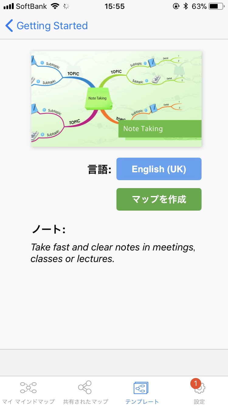 また、マインドマップ作成時には、マップのテンプレートが用意されているため、