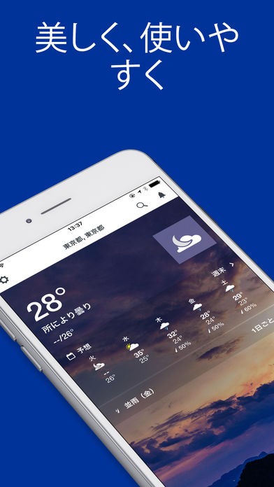 The Weather ChannelとWeather.comでその時々の降雨のアラートを知ることができます。信頼性の高い天気予報で1日や1週間の旅行の計画をたてることが。ダイナミックなホーム画面が特徴で、知りたい予報の都市名を入力すると、現在だけでなく、1時間ごとの天候が表示されます。アジア、南太平洋、北アメリカなどそのほか世界中の地域の予報を知ることができ、今日から15日間、週末の予報なども見られます。体感温度や風向き、湿度、気圧、紫外線指数も知ることができます。