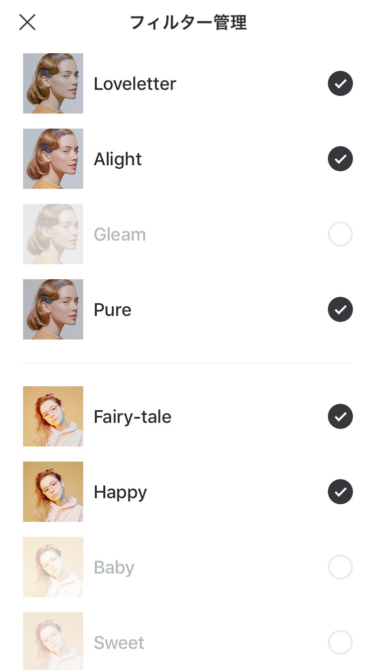 フィルター管理も可能で、お気に入りのフィルターだけを選択することができます。