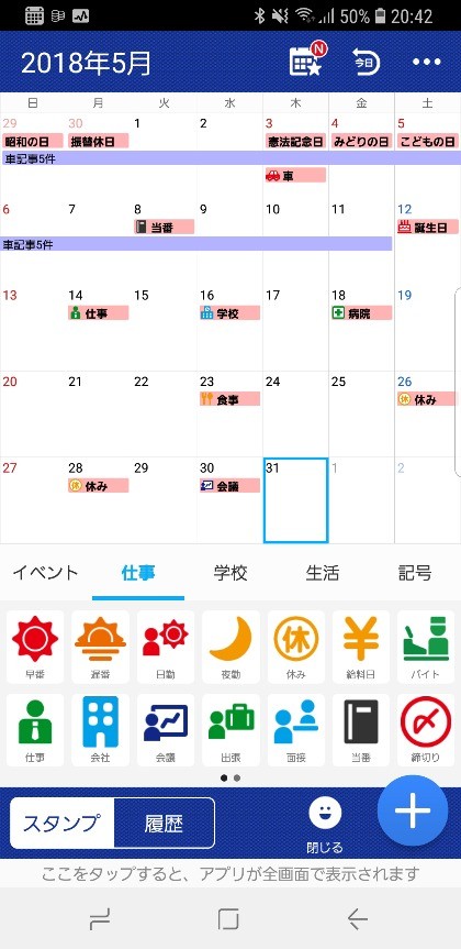 「Yahoo!カレンダー」は、スケジュール入力がサクサクと簡単に入力できるカレンダーアプリです。スケジュールでよく使用する予定キーワードがスタンプになっているので、貼りつけるだけで簡単登録できます。予定を管理したいけど、細かい入力作業は嫌と感じている方にはおすすめのカレンダーアプリです。Yahoo!を頻繁に利用する人はWebからでも反映してくれるので、いちいちアプリから入力しなくても予定を書き込め便利です。