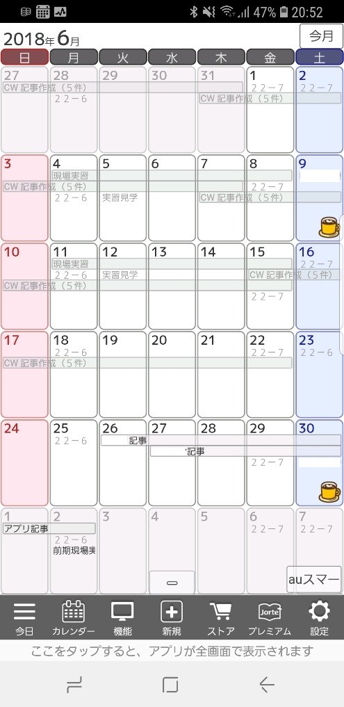とにかく細かくスケジュール管理がしたい方にオススメなカレンダーアプリが「ジョルテカレンダー」です。便利な機能として、自分のカレンダーに無料の公式カレンダーを連携させられるので、自分が入力しなくてもいろいろな情報がリンクしてくれます。スマートフォンやPCで同じ情報を確認および入力もでき、音声入力にも対応している部分が優れもののアプリです。一部有料となっていますが、機能が多くあるので無料版でも十分に活躍してくれます。効率良く管理ができますが、機能が多いので使いこなすのに少し時間が必要かもしれません。