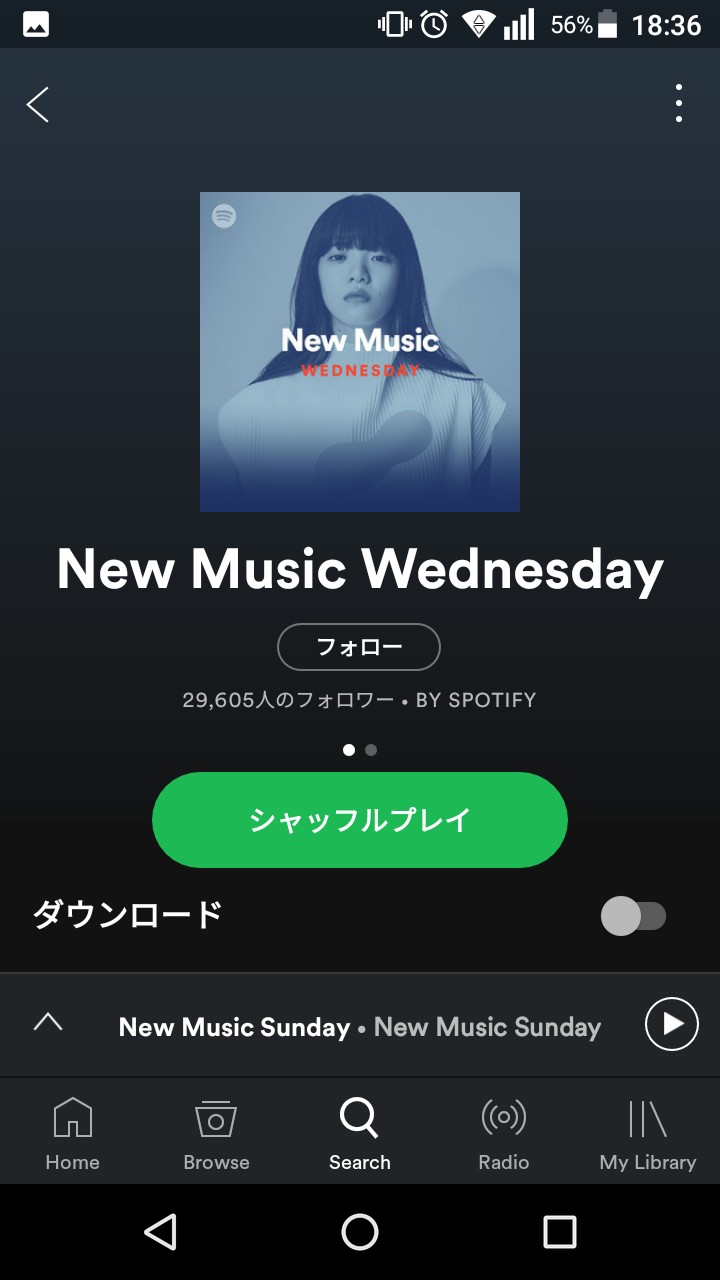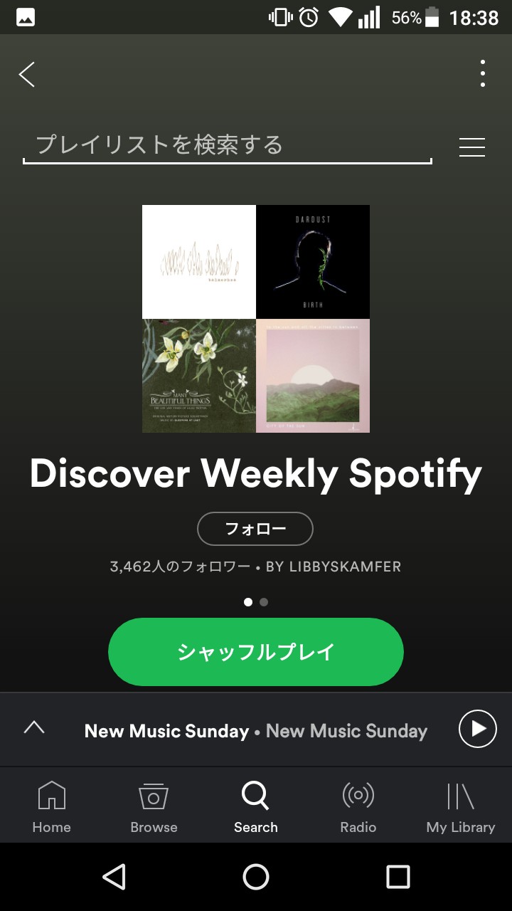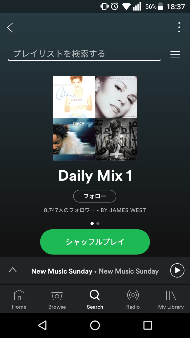 「Discover Weekly」と違い、24時間以内にほぼリアルタイムで、自分の傾向に合わせた曲が追加されるのがこの「Daily Mix」です。
