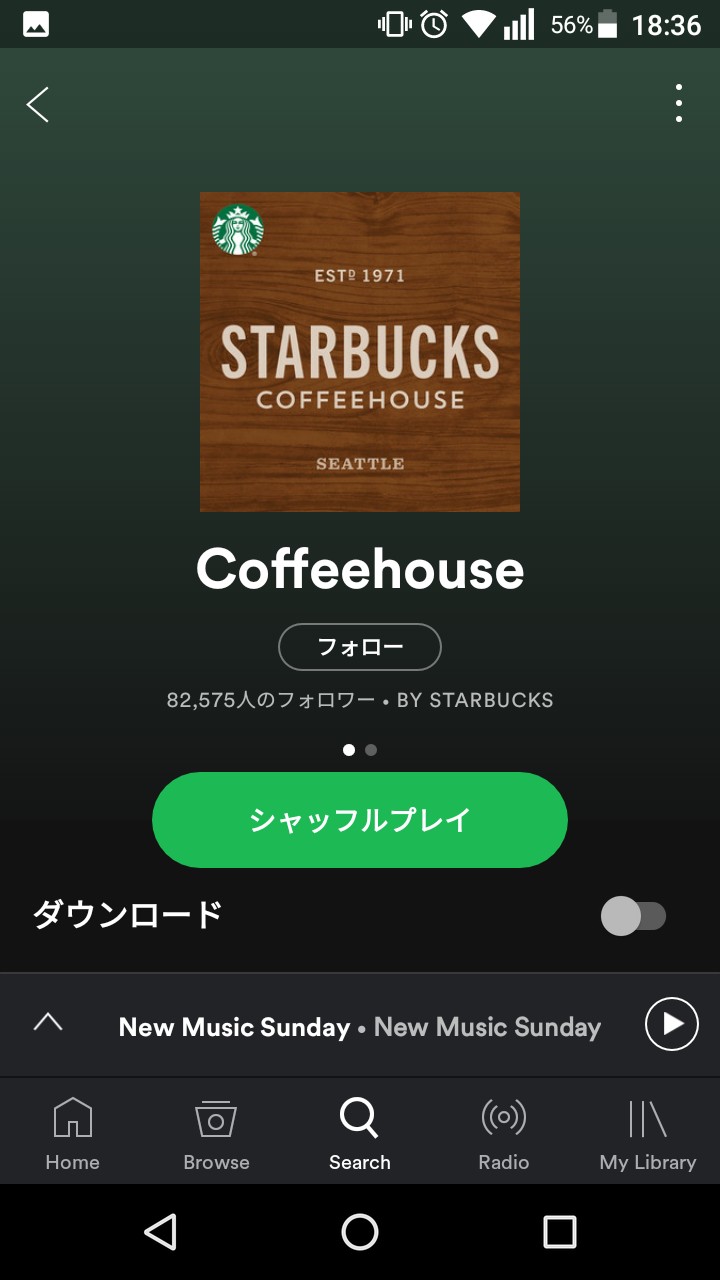 タップすると、スター・バックスが提供しているプレイリストが出てきます。