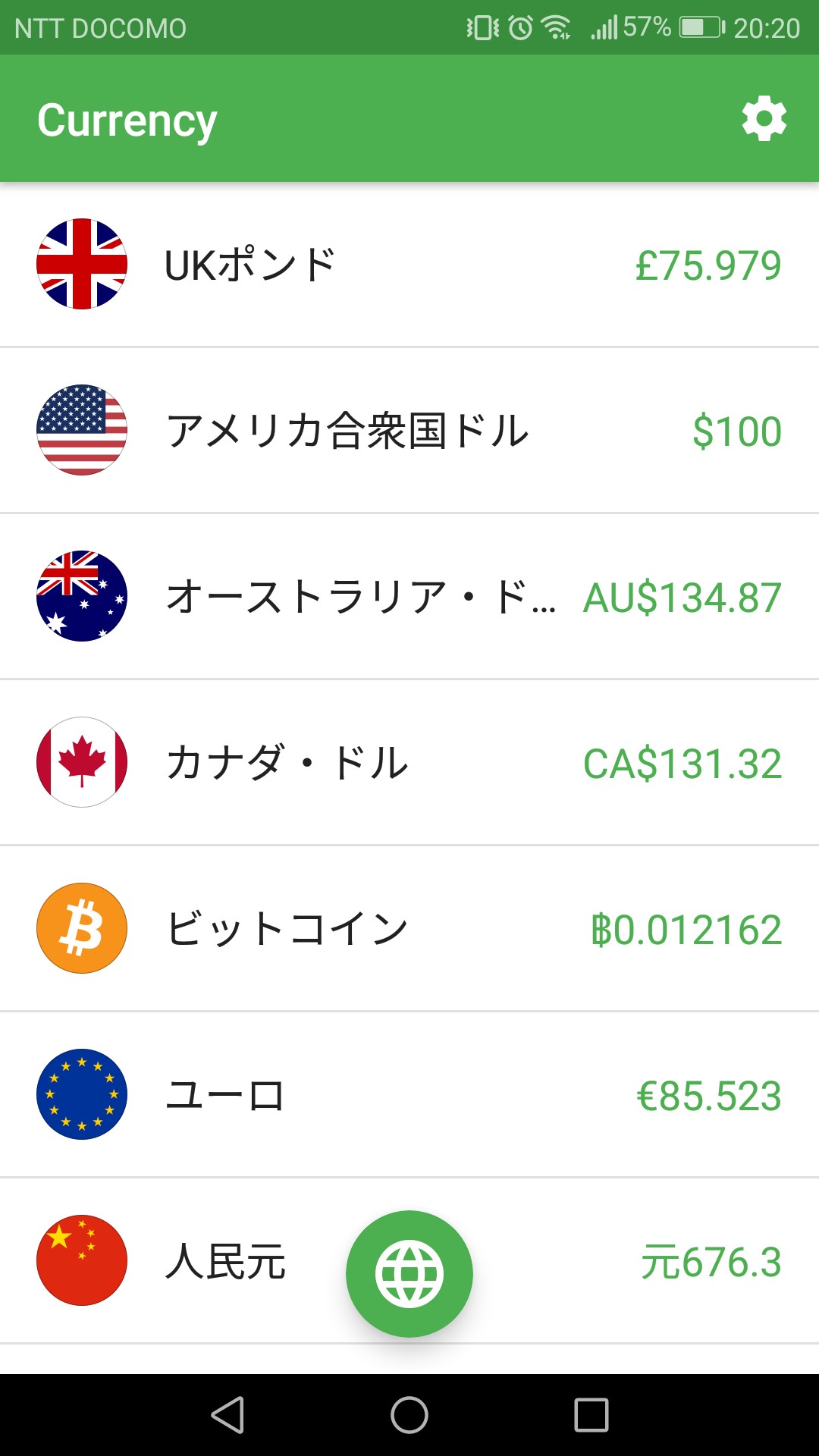 このアプリはオフラインで使用できる通貨コンバーターです。