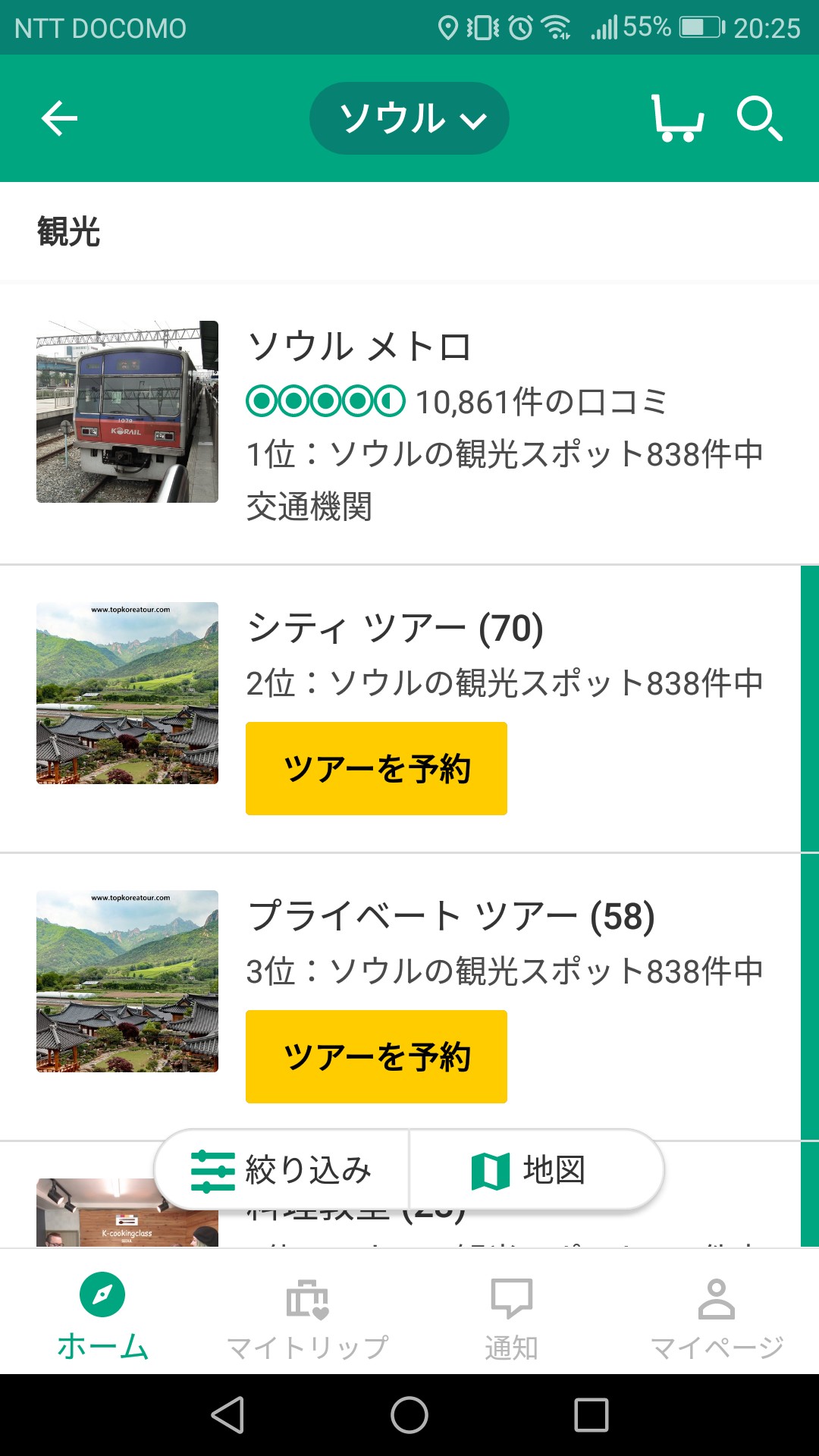 あらかじめ、旅行に行く国の情報をダウンロードしておけば、オフラインでもその国の観光スポットが見られます。