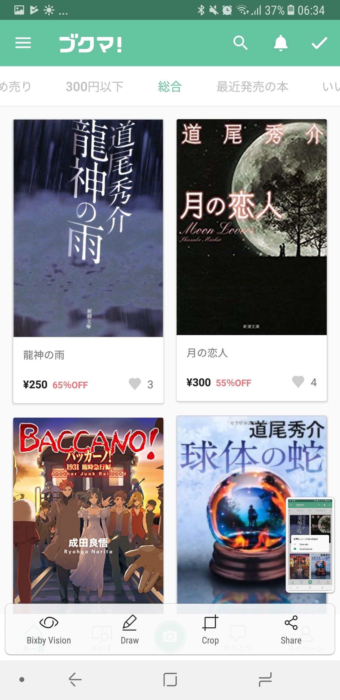 また、常時出品されている本の数はとても多く、本が好きな方は見ているだけでも楽しいアプリで、漫画の処分にも最適です。