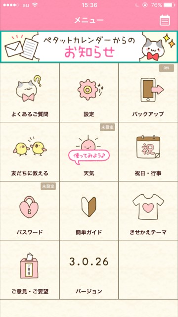 毎日をかわいく記録したいなら「ペタットカレンダー」がおすすめです。
