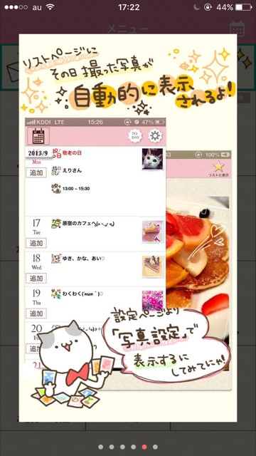 お天気設定すれば、自動で記録してくれますし、写真も日付順にカレンダーに表示してくれます。
