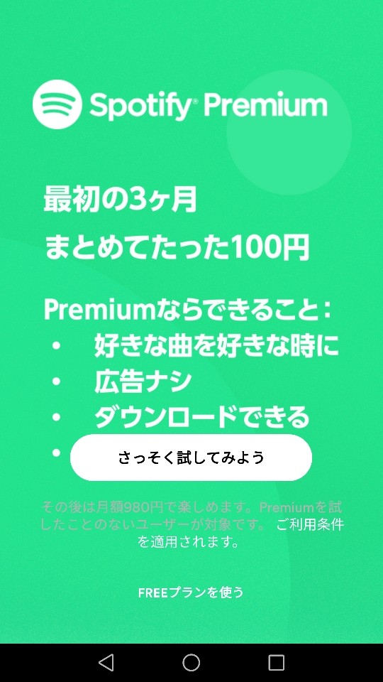 それでも、曲の一部を聴くことができるので、それでも十分という人には、無料のフリープランをおすすめします。