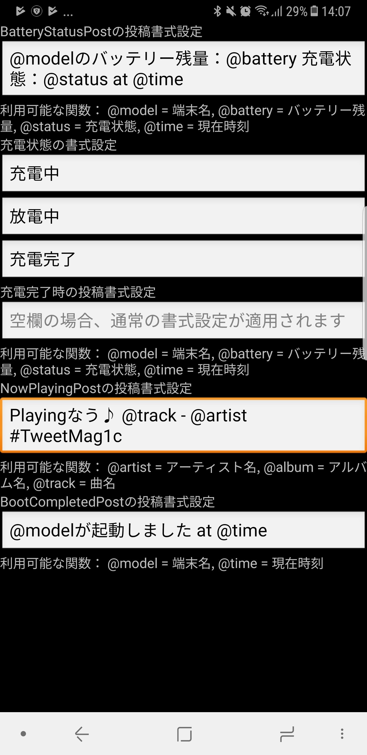 「TweetMag1c」は再生中の音楽をTwitterに投稿するのはもちろん、それ以外にもスマホのバッテリー状況などを自動で投稿することができるアプリです。アプリをインストールして設定しておくだけで自動でTwitterに投稿してくれるのでとても便利なアプリです。
