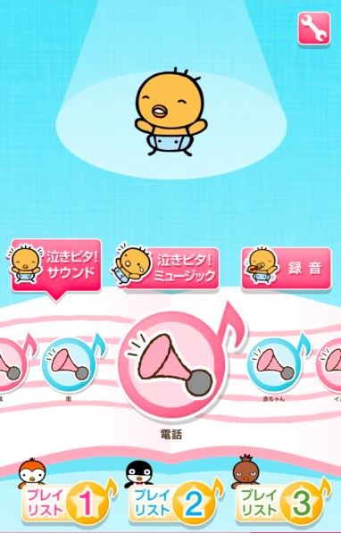 赤ちゃんが泣き止むと言われているサウンドや音楽が、豊富に収録されている赤ちゃん・乳幼児向けアプリ『たまひよの泣きやませ【泣きピタ!】』。胎内音や心臓の音、動物の鳴き声など、様々なサウンドが15種類収録されています。