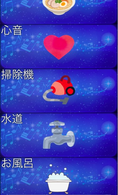 赤ちゃんの夜泣きの声に反応し、自動で赤ちゃんお気に入りの効果音を再生してくれる『夜泣きみまもりアプリ 〜夜泣きを検知して泣き止み音を再生〜』。使用方法はとっても簡単です。掃除機の音や洗濯機の音など8種類の効果音の中から、赤ちゃんが好きな音を設定し「みまもりスタート」をタップするだけ。アプリが大きな音に反応し、自動で設定した効果音を再生してくれます。