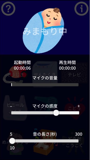 『夜泣きみまもりアプリ 〜夜泣きを検知して泣き止み音を再生〜』