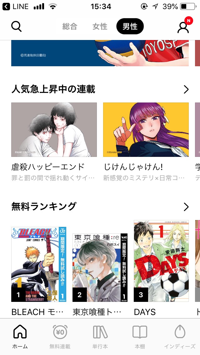 日付が変わる度に無料で読めるのは「LINEマンガ」