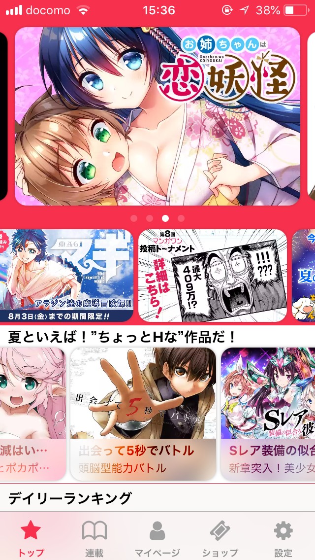 「マンガワン」は1日1回無料でライフが配られ、それを消費することで無料で漫画が読める漫画アプリです。iOS版、Android版ともに配信されていますがAndroid版はライフ制ではなく1日20分間無料で読むことができるシステムになっています。読むスピードが早い人なら、20分間読み放題のAndroid版の方が読み進めるのが早いかもしれません。「ケンガンアシュラ」「出会って5秒でバトル」などの漫画はブラウザ広告で見かけることも多い人気の作品です。1日1話しか読めないのがもどかしいと感じる人が多いかもしれませんが、確実に読み進めていくことができるおすすめのアプリです。