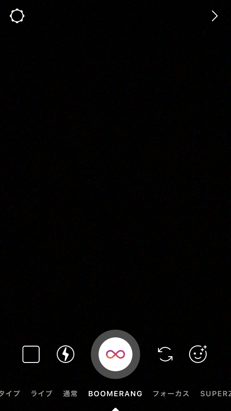 4. カメラのスイッチボタンがBoomerangのアイコンボタンに変わります。