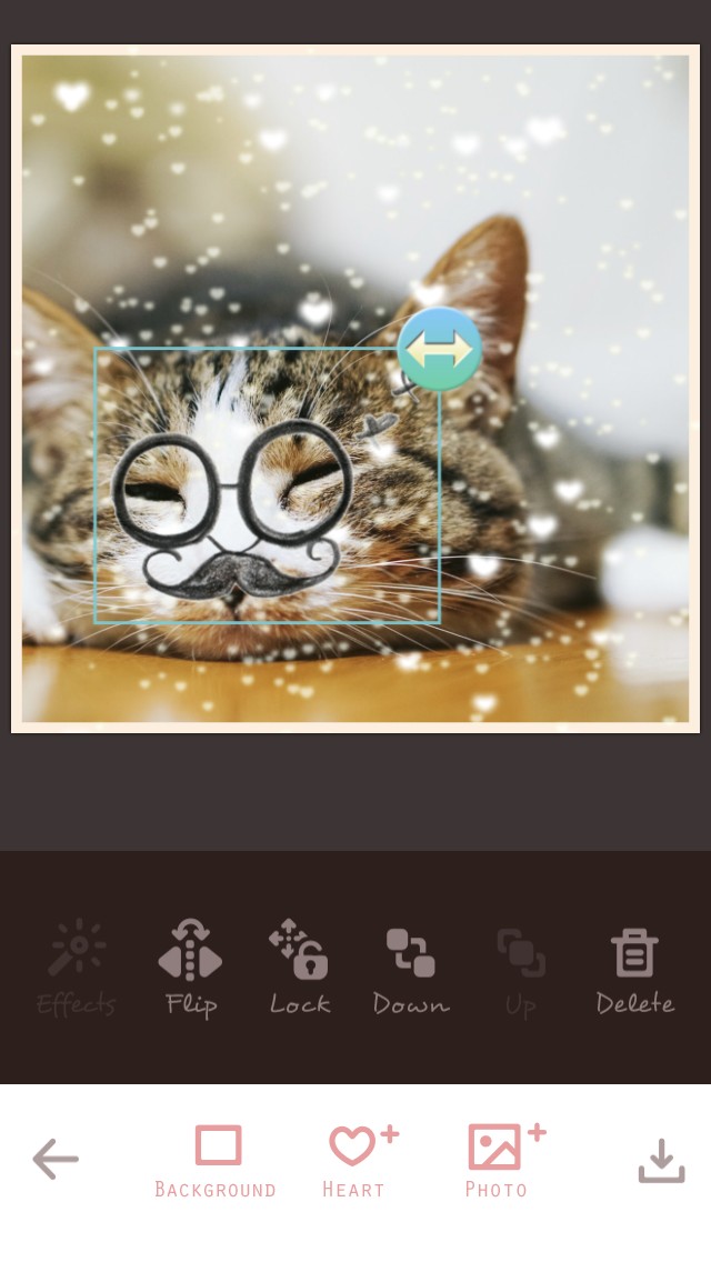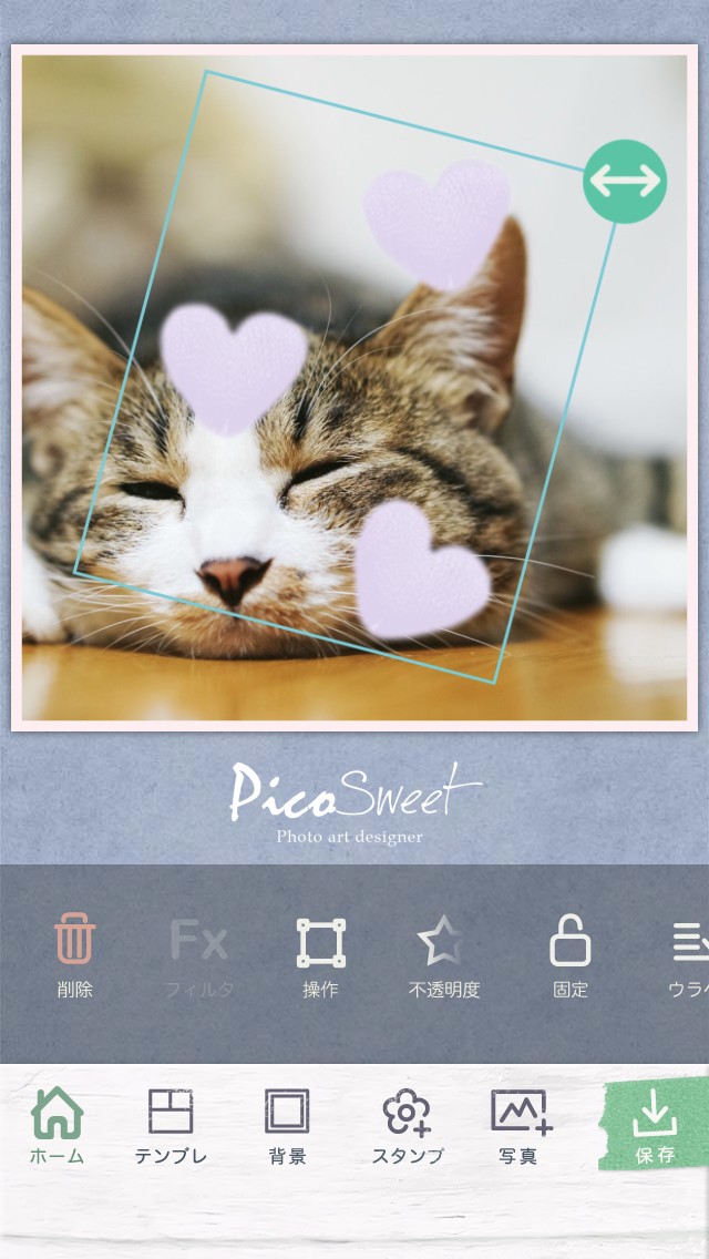 淡いハートやリボンのスタンプを写真に加えるだけで、一気に女子力高めのかわいい写真に仕上がります。