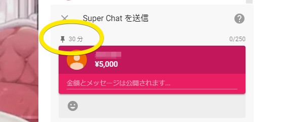しかし、固定表示の時間はスパチャを送ったライブ配信のみに限定されます。配信が終わってしまえばチャット欄が閉じ、同時に固定表示も消えてしまいます。